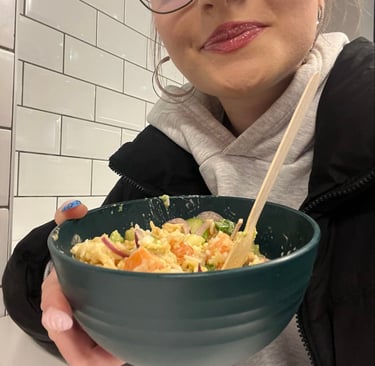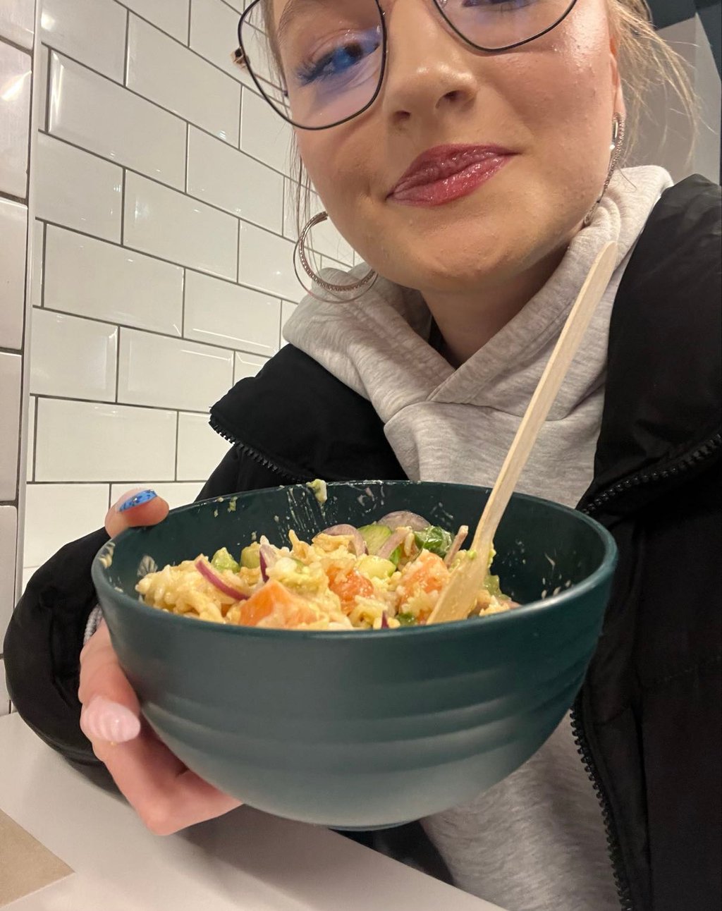 I finished earlier because all the work was done. After work, I took the bus to the city center and walked around in some shops. Later, I met my friend Fay and we went to the city together. We looked in different stores and ate a poké bowl because we were hungry. At the end of the day, we were very tired and took the bus home.