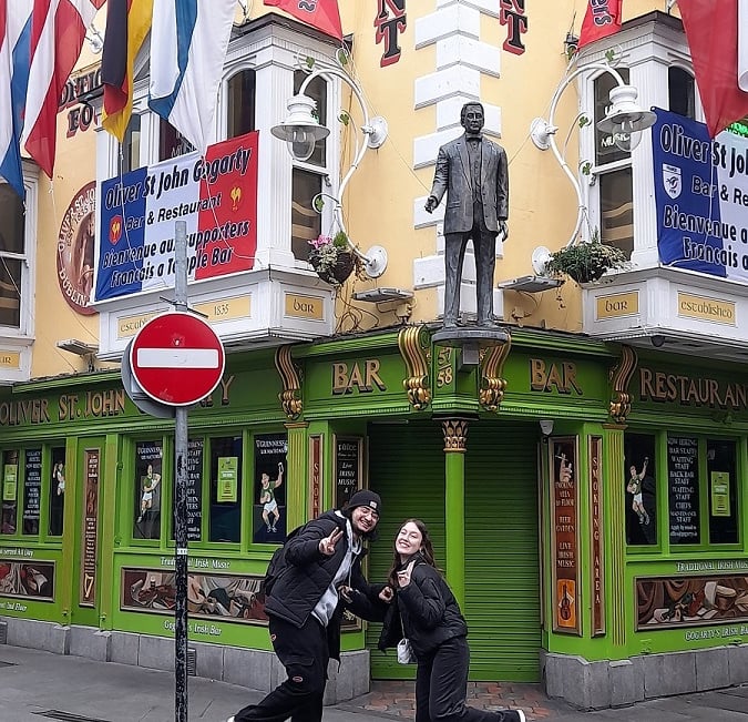 After work I went downtown with a friend. After our mini walk we joined our teachers and we had a drink with some other schoolmates. The teacher treated and some students tasted the beer Guinness but apparently it was not so good. After our drink I went home to eat and I talked a little with my host family. This was my day.