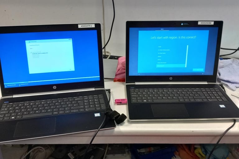 After waiting for a bit, my coworker Alexandru arrived, and together we waited for our boss to arrive. He was sadly about 20 minutes late and when he arrived he immediately opened up the store for us, so we could go back to fix up more computers by giving them all the ram they need so they could be shipped to Portugal. After finishing up 55 computers we got another task where he gave us laptops and told us to give them 8 GB of ram, an SSD and to install windows on them. This took us a while, but eventually we managed to do this on 14 laptops, with only 2 not working.