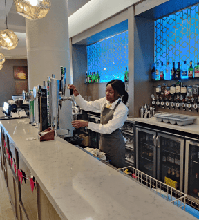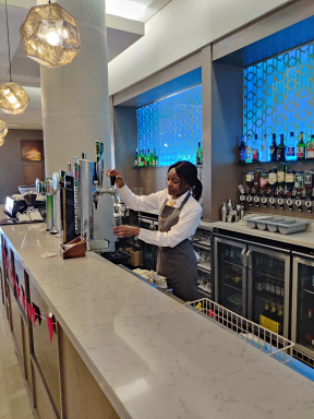 Right after putting on my uniform, I received the customers who were standing at the entrance of the restaurant and they said they wanted lunch. So my teammate, Lallie, explained to them the system of our restaurant.