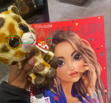 But I really found my happiness on the 2nd floor, where I bought a supermodel book and a stuffed giraffe for my little sister.