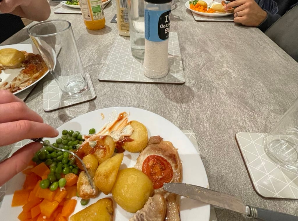 What I took for breakfast was a breakfast I ate every day here. Cornflakes and 3 sandwiches and besides that a glass of fruit juice.