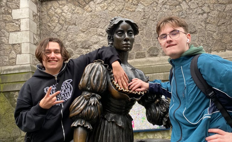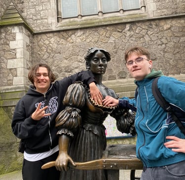 Afterwards we visited a few more shops, both tech shops and clothes shops. Then we took Thijs to the hairdresser, which turned out very well because we gave him a new haircut. We discovered some beautiful sides of Dublin here, such as a beautiful church, a castle and a very beautiful park with beautiful statues.